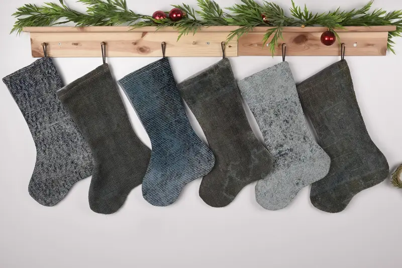 Media de adornos navideños beige y marrón, media navideña de 17 pulgadas de ancho