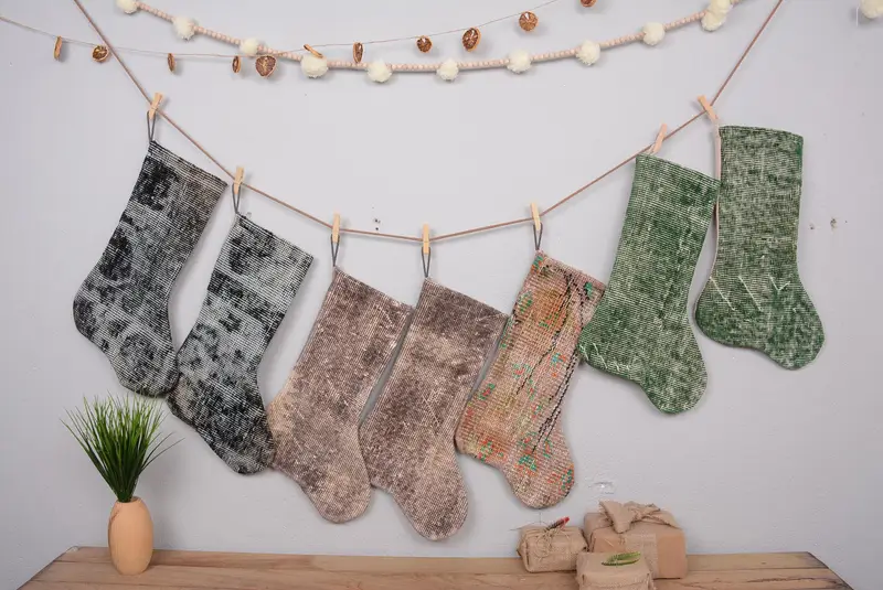 Patrón de adornos navideños, calcetín navideño bohemio de 7 pulgadas de ancho