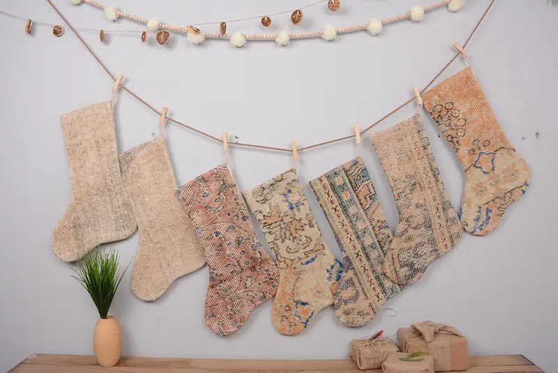 Patrón ecológico de adornos navideños, calcetín navideño de 7 pulgadas de ancho
