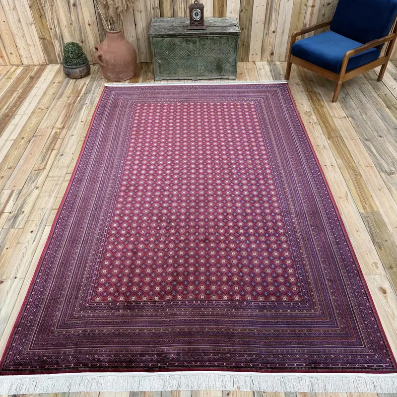 Alfombra de lunares rojos y azules, decoración elegante de 6,4x9,9 pies