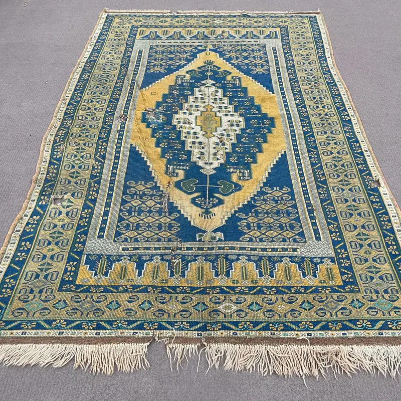 Alfombra de rayas azules y verdes, diseño geométrico de 5,4x8,5 pies
