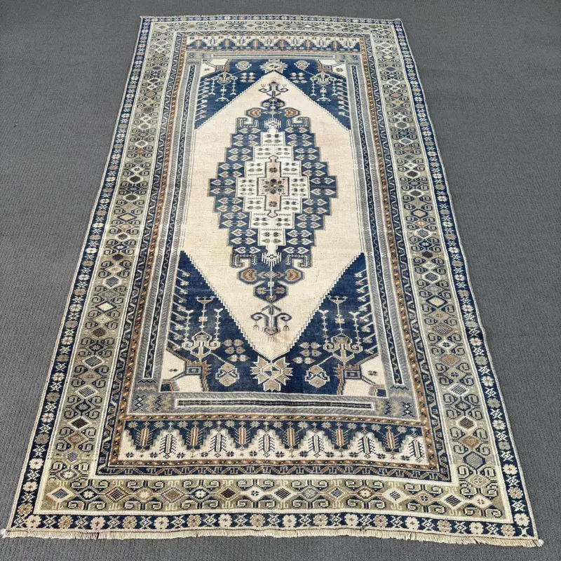 Alfombra azul beige, 4,4x8,2 ft con estampado liso