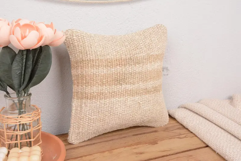 Almohada bordada 12x12, almohada de tiro vintage a rayas