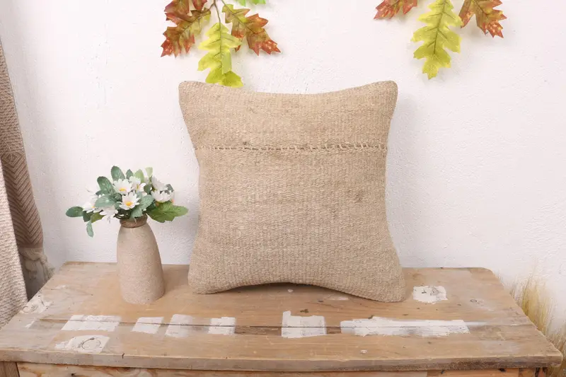 Almohada de lanzamiento beige del suroeste bordada, cojín de lino hecho a mano de 14x14