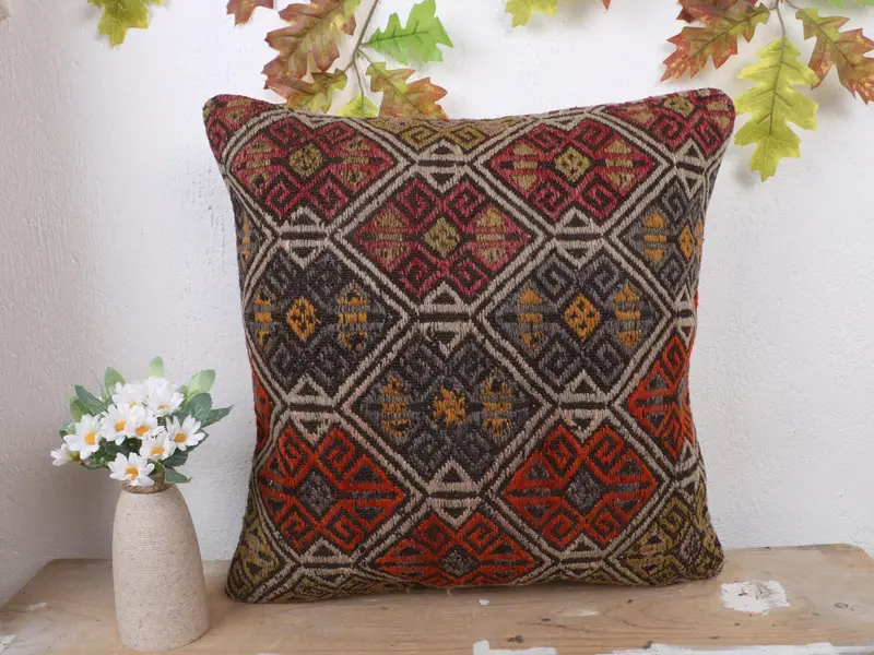 Almohada de tiro bordada roja y gris, cojín geométrico vintage