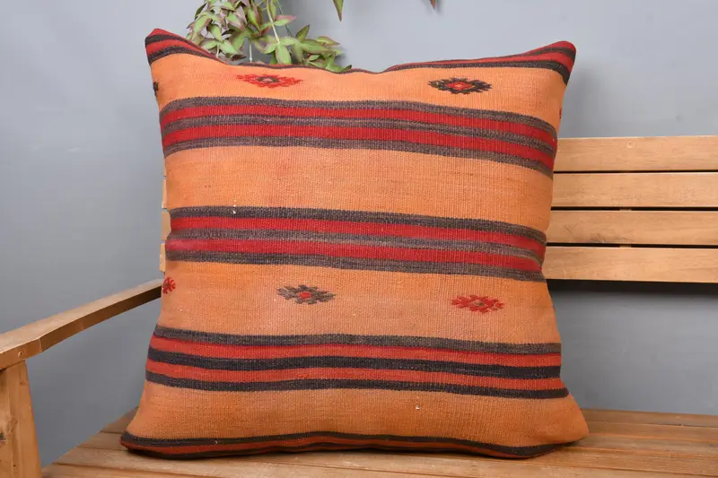 Almohada de tiro a rayas naranja y roja, cojín bordado 28x28