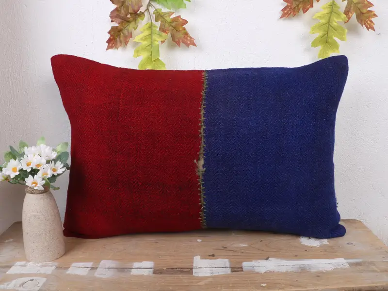Almohada de tiro a rayas rojas y bronce, almohada rectangular bordada vintage