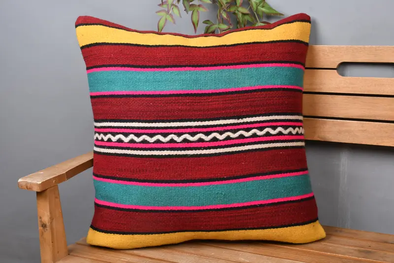 Almohada de tiro de rayas rojas y verdes, cojín bordado vintage