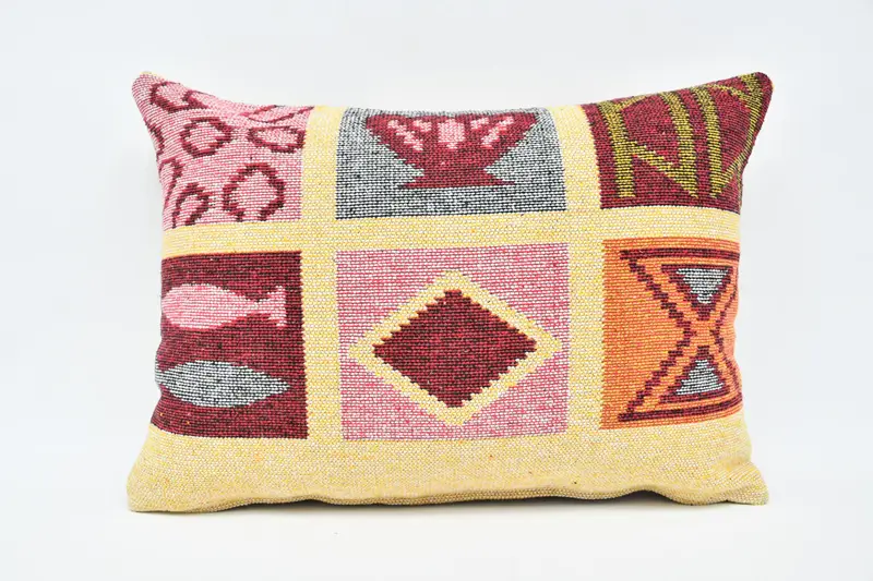 Almohada de lanzamiento bordada del suroeste rojo, cojín vintage hecho a mano