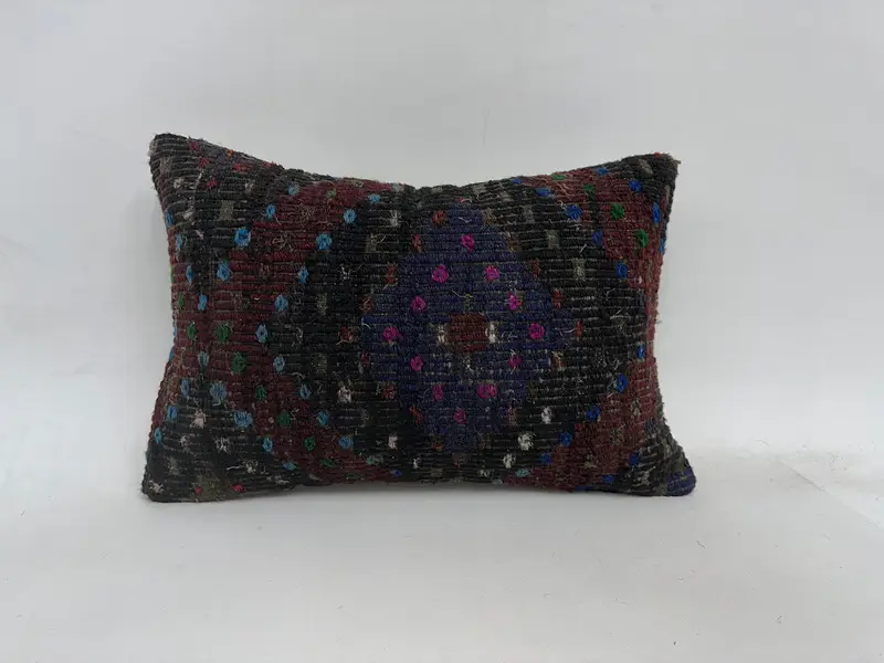 Almohada de tiro del suroeste marrón y púrpura, cojín rectangular hecho a mano