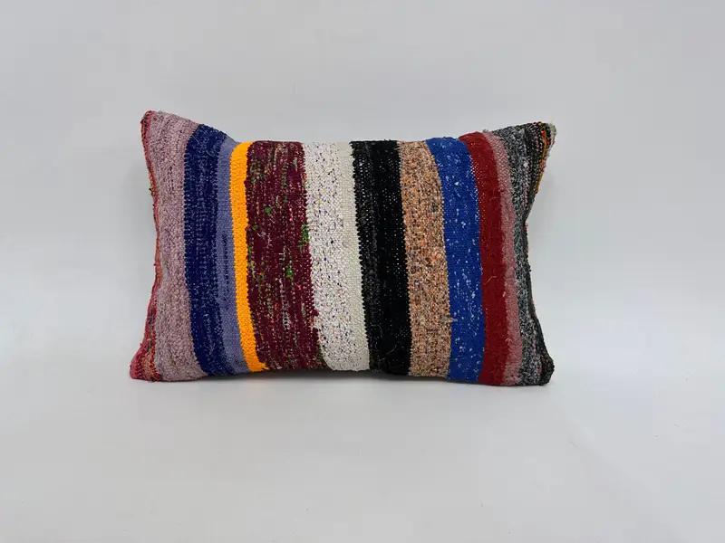 Almohada bordada a rayas marrón y bronce, almohada de lanzamiento hecha a mano