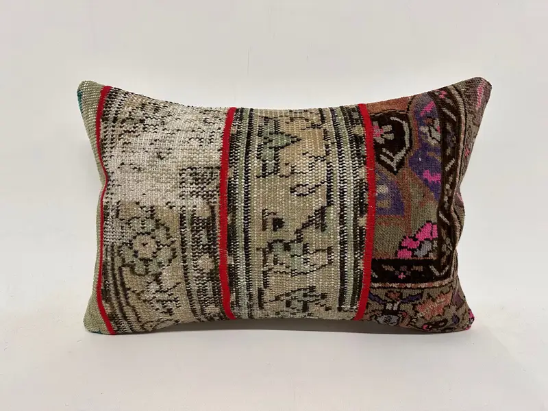 Almohada bordada beige y marrón, almohada de tiro hecha a mano de 16x24