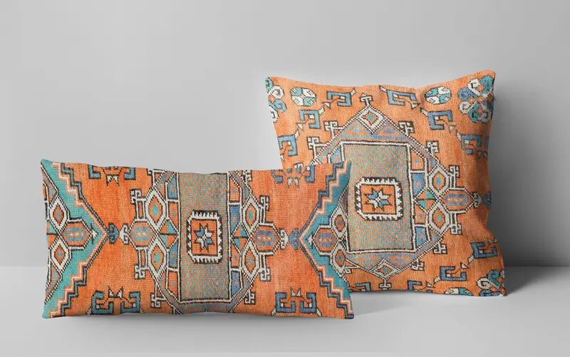 Almohada de lanzamiento naranja del suroeste, cojín rectangular vintage