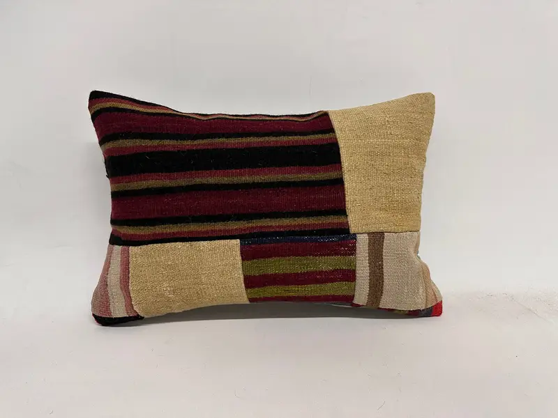 Almohada de patchwork bordada hecha a mano, almohada de lanzamiento vintage verde y rojo