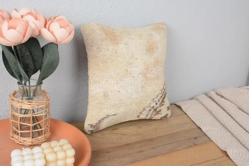 Almohada de tiro del suroeste beige, cojín vintage bordado de 12x12