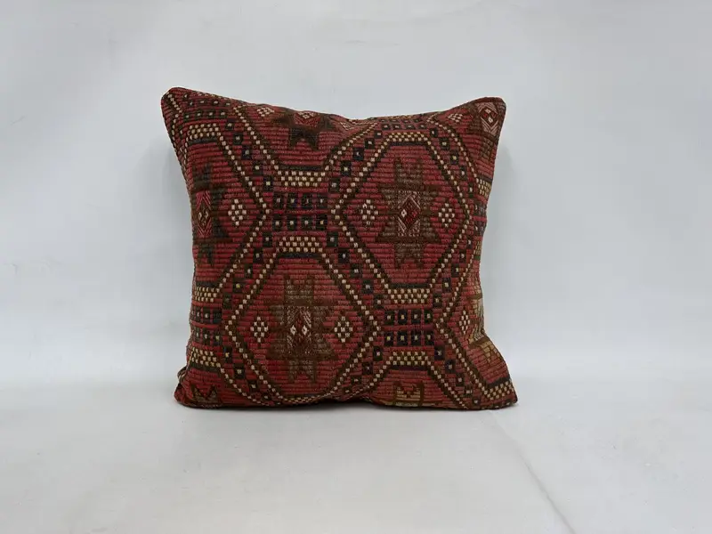 Almohada de tiro bordada roja y marrón, cojín hecho a mano 28x28