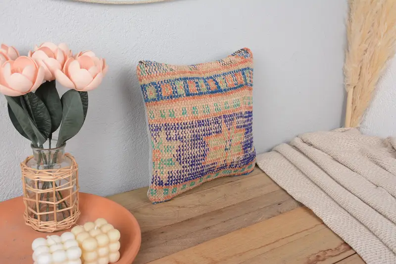 Almohada de tiro floral verde y naranja hecha a mano, cojín bordado vintage