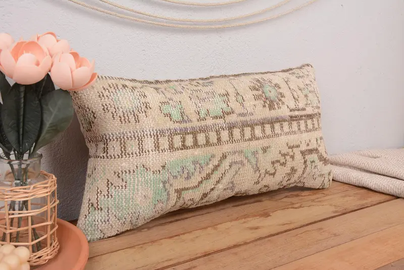 Almohada bordada floral beige y marrón, almohada de lanzamiento versátil de 12x24