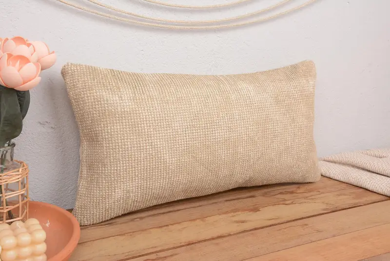 Almohada de tiro bordada del suroeste hecha a mano, almohada de lino beige vintage