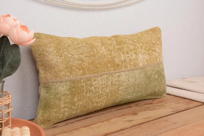 Almohada de lanzamiento de patchwork verde, almohada vintage bordada de 12x24