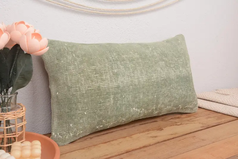 Almohada de rayas verdes y beige, almohada de lanzamiento bordada 12x24
