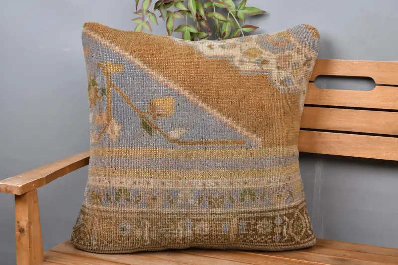 Almohada de tiro del suroeste marrón y púrpura, almohada de lino y lana hecha a mano