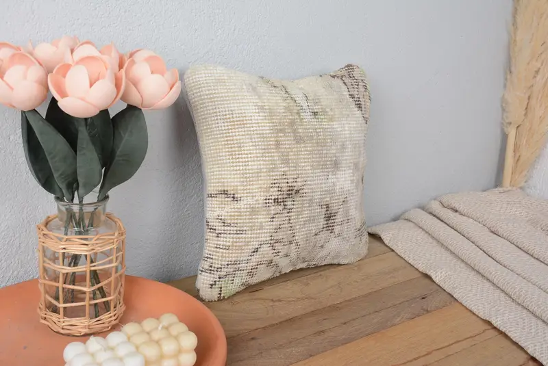 Almohada de tiro del suroeste beige, cojín bordado vintage de 12x12