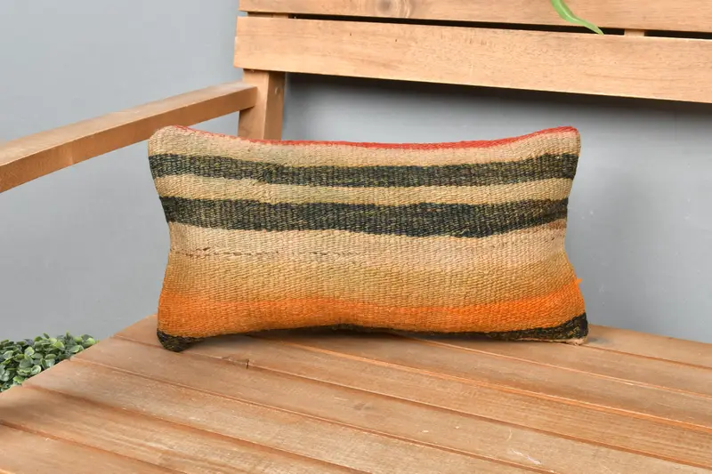 Almohada de tiro a rayas naranja y beige, almohada bordada vintage