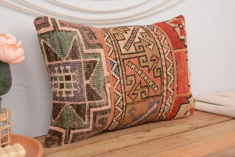 Almohada de tiro patchwork rojo y bronce, cojín bordado 16x24