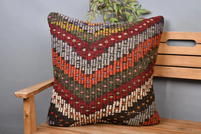 Almohada geométrica de tiro verde y naranja, cojín bordado vintage
