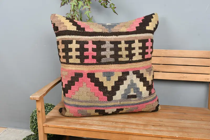 Almohada geométrica rosa y marrón, almohada de tiro bordada 32x32