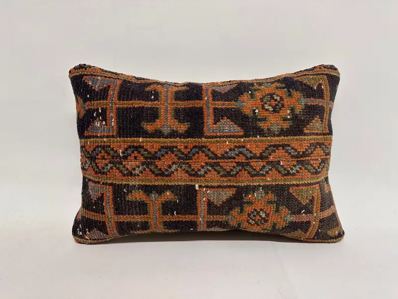 Almohada de lanzamiento de patchwork naranja y bronce, almohada bordada de 16x24