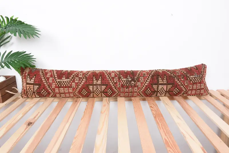 Almohada de lanzamiento geométrico rojo y beige, cojín vintage hecho a mano