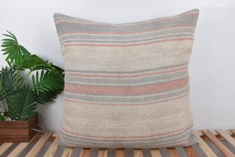 Almohada de rayas beige y gris bordada, almohada de lanzamiento versátil de 32x32