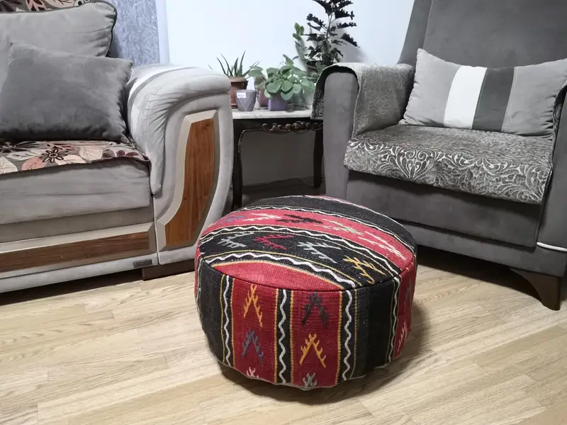 Almohada de lanzamiento de lana a rayas hecha a mano, almohada vintage de círculo rojo y negro