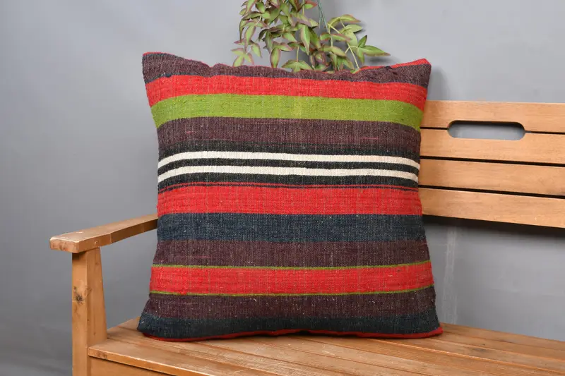 Almohada de tiro a rayas verde y bronce hecha a mano, cojín bordado vintage