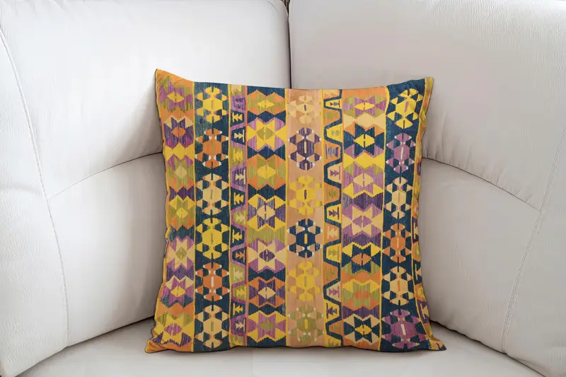 Almohada de tiro de lino con patrón geométrico, almohada de acento bordada vintage