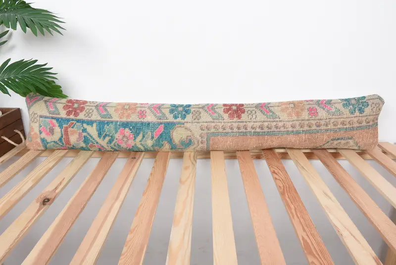 Almohada de tiro floral verde y beige bordada, cojín de lino hecho a mano