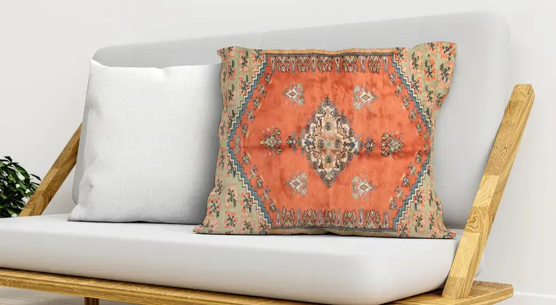 Almohada bordada geométrica roja y beige, almohada de lanzamiento hecha a mano vintage