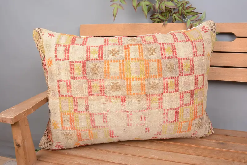 Almohada de lanzamiento bordada naranja y roja, cojín geométrico hecho a mano de 20x28