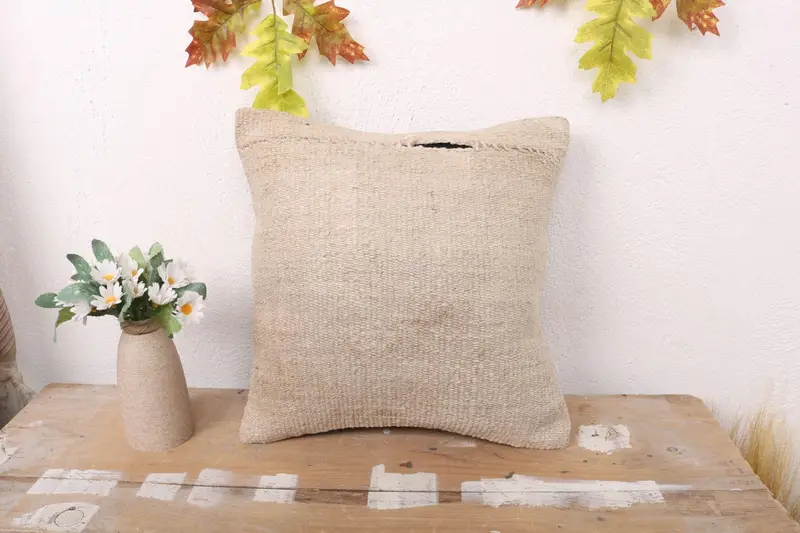 Almohada bordada del suroeste beige, almohada de lanzamiento de cáñamo hecha a mano