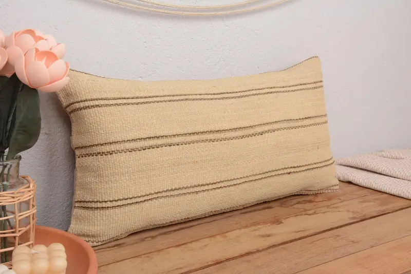 Almohada de rayas beige y marrón, almohada de tiro bordada 12x24