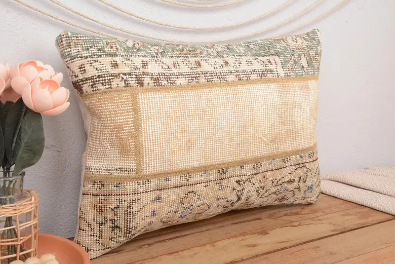 Almohada de lanzamiento de patchwork beige y verde, cojín bordado vintage