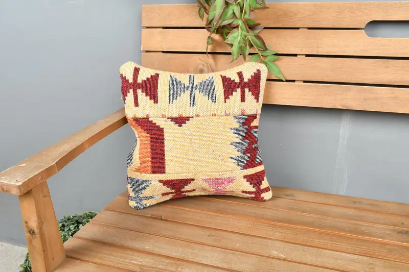 Almohada de tiro bordada beige y roja, cojín geométrico 14x14