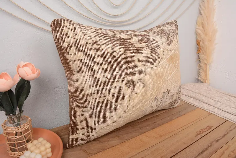 Almohada rectangular geométrica beige y marrón, almohada de lanzamiento bordada