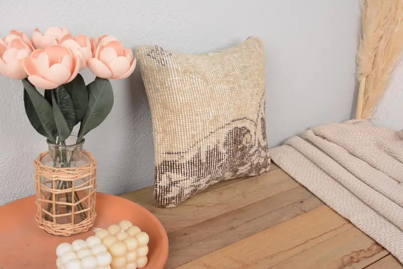 Almohada de tiro del suroeste beige y marrón, cojín bordado vintage