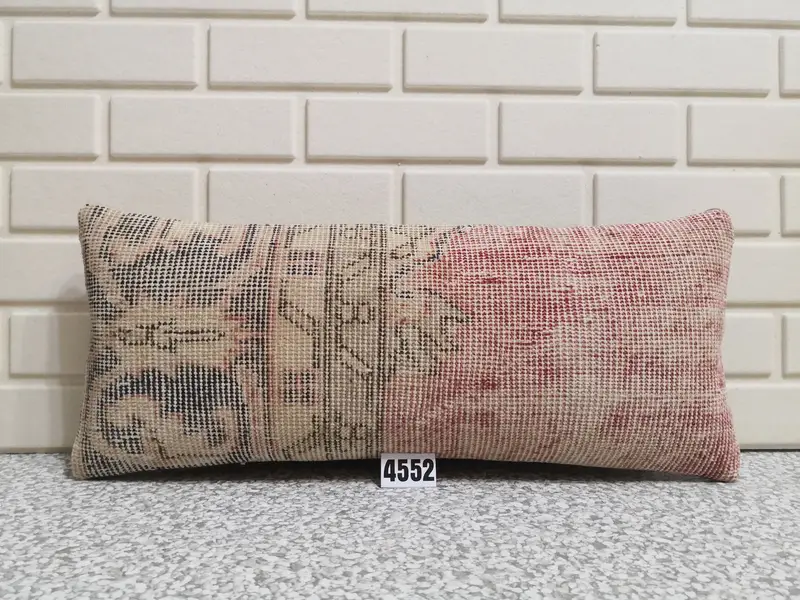 Almohada de lanzamiento de rectángulo geométrico rojo y gris, almohada de lana hecha a mano