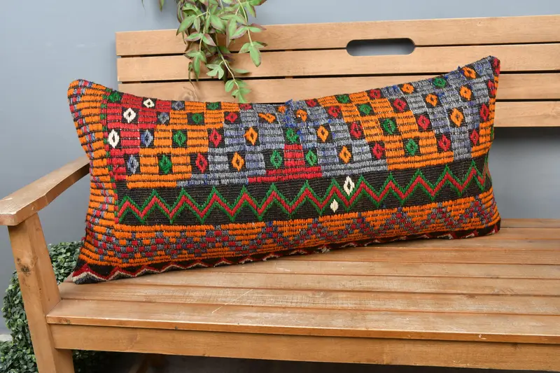 Almohada de lanzamiento naranja y rojo del suroeste, cojín bordado hecho a mano