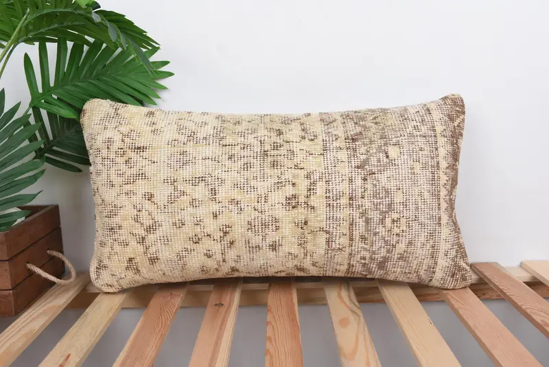 Almohada bordada del suroeste beige, almohada de lanzamiento hecha a mano versátil de 12x24