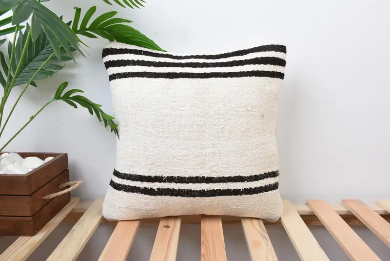 Almohada de tiro de lino bordado, cojín de rayas vintage
